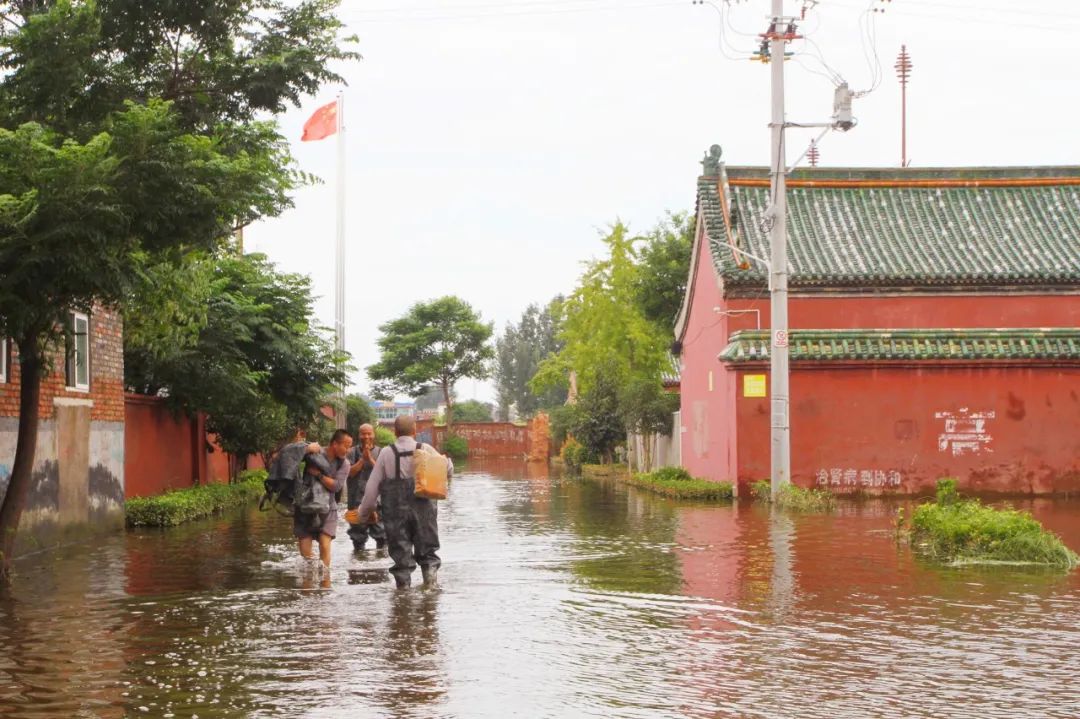市区的水基本排除,新乡市佛协所在的定国禅寺却依然被一片汪洋围绕着,寺院一切人员进出要靠村民的三轮车和水裤。
